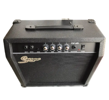 The SMIGER Guitar Amplifier is a piece of equipment that is used to make an electric guitar louder and shape its sound. It works by taking the signal from the guitar and increasing the volume through electronic circuits. The amplifier has different settings and controls, such as volume, bass, treble, and gain, which allow the guitarist to adjust the sound to their liking. It typically consists of a speaker and a housing, with input and output jacks for connecting the guitar and other devices.