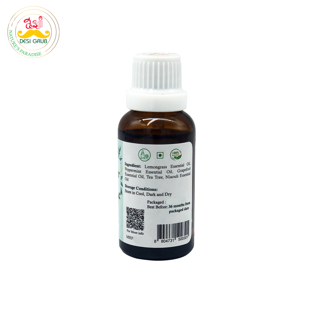 Desi Grub CleanAir Elixir 30ml – Essential Oil Blend for Air Purification, Breathing, Focus & Meditation