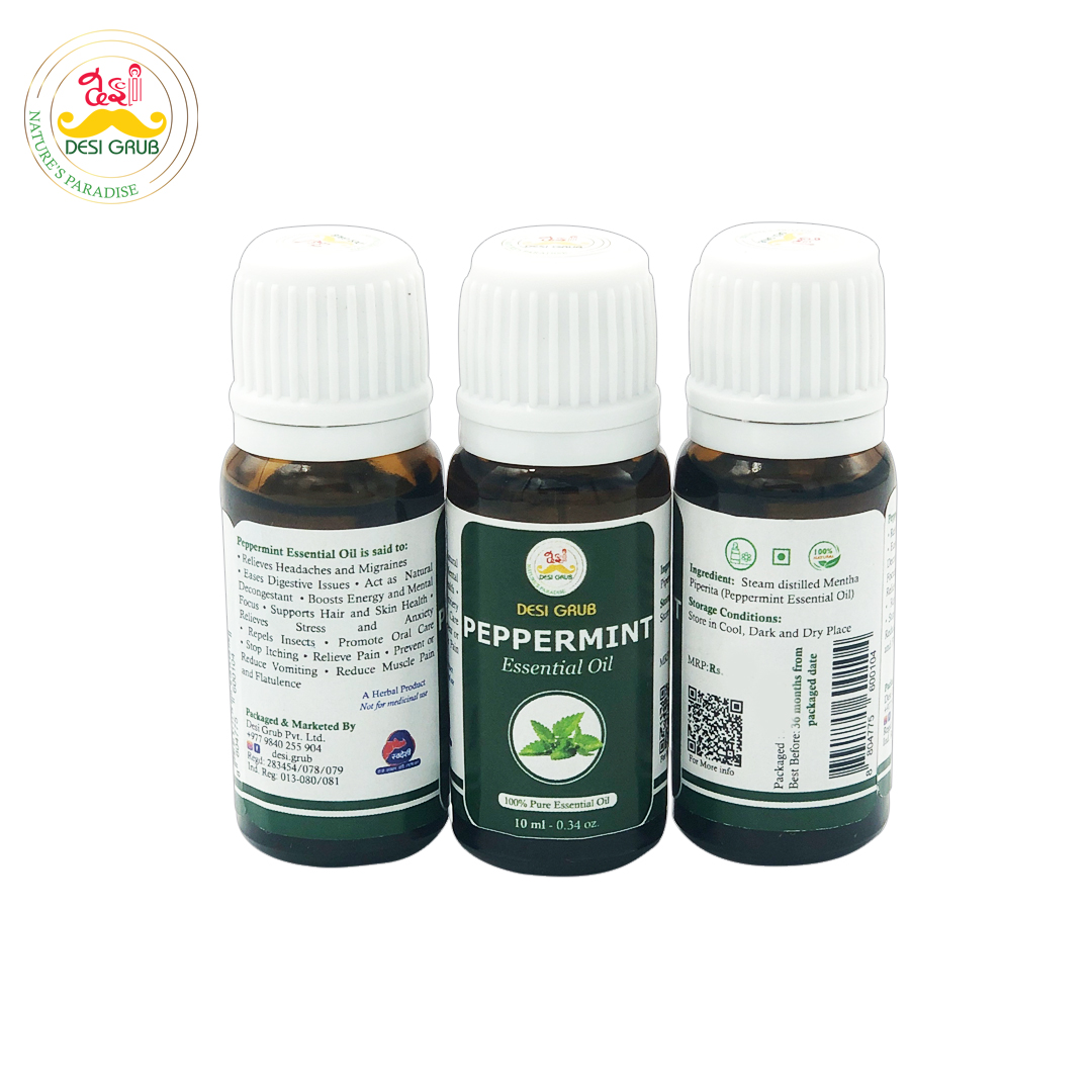 Desi Grub Peppermint Essential Oil 10ml – Invigorating Purity in Every Drop