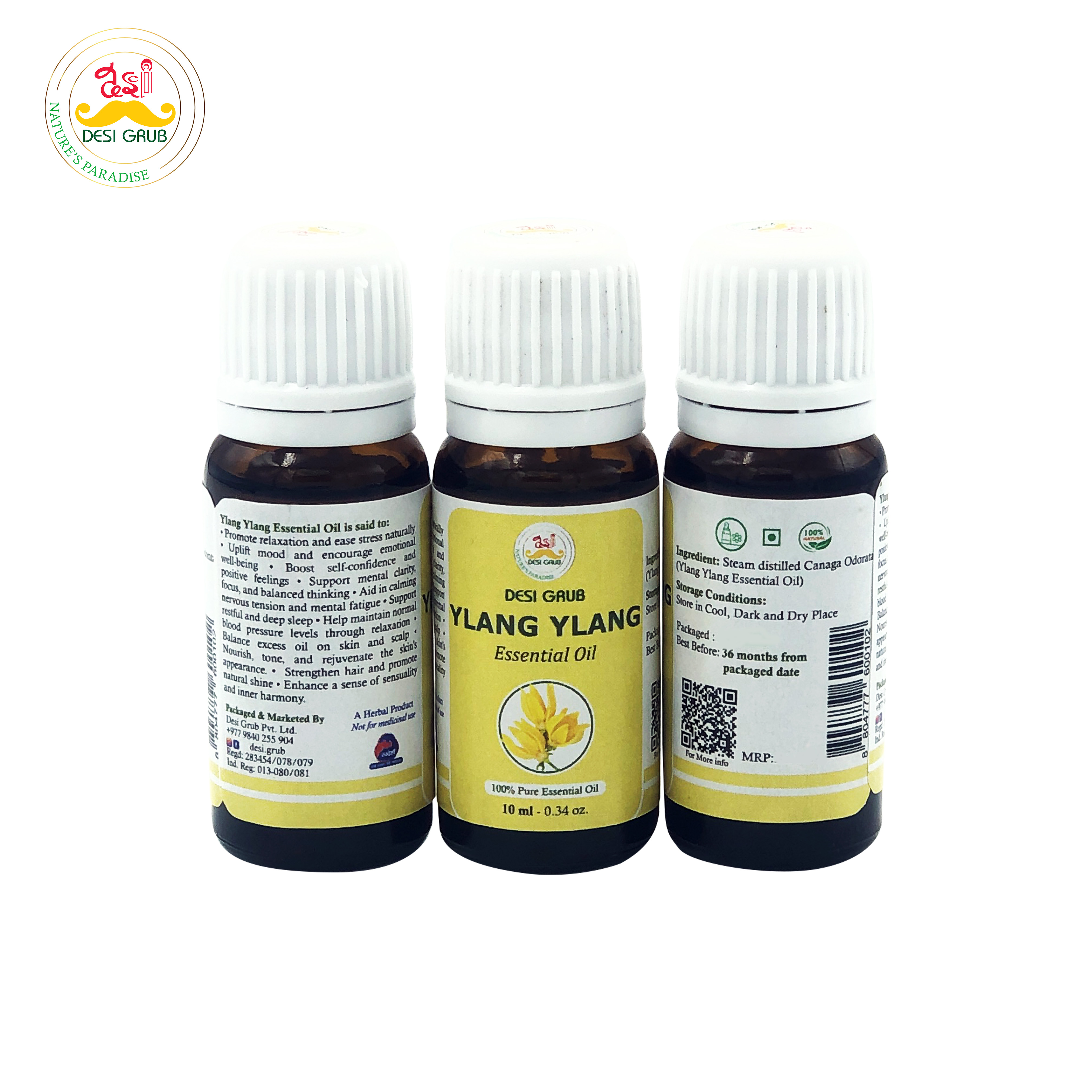 Desi Grub Ylang Ylang Essential Oil 10ml | Natural Mood, Skin & Sensuality Enhancer