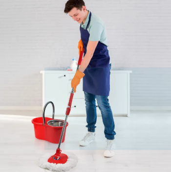 • EFFICIENT SPIN WRINGING PERFORMANCE - Unlike pedal-operated mops, our Mopplex mop and bucket with wringer set for home set offers stronger spin wringing performance with just a gentle downward pressure. The built-in wringing basket with splash guard keeps water inside the bucket, ensuring a drier mop head and saving time and effort.