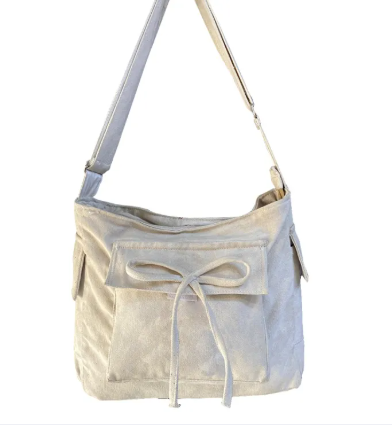 The bag's standout design includes a cute fabric bow detail and an adjustable crossbody strap for maximum comfort and versatility. A magnetic button adds an extra layer of security while keeping your items easily accessible.