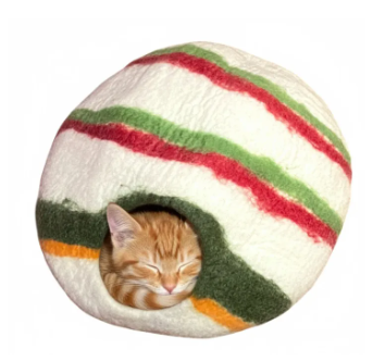 This eco-friendly cat house, crafted using traditional Nepalese felting techniques, offers a snug, sustainable haven. Its durable, soft texture ensures lasting comfort. Support local artisans and eco-conscious design while giving your pet a stylish, cozy retreat perfect for any season.