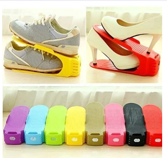 Product description : Use this shoe rack you can smart use of space, its double layer structure can save space up to 50%, make you shoe cabinet neat and clean. Features: A good choice for storing shoes and saving space. Layering shoes isolated, avoid odors. Well-design: on the top of the shoe rack panels designed non-slip background, bottom mount, side mount, make the shoes not falling, no moves. Colorful, easy to fine your shoes. High quality material, durable and strong. Shoe Rack For Keeping your Shoes well Organised Specification: Condition : 100% brand new and high quality Material: Plastic Quantity:1pc Color: We send color randomly