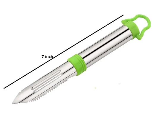 stainless steel peeler knife! Peeler knife is a necessary tool for kitchen. Peel vegetables and fruits with this sharp peeler and give your cooking a new experience. Steel circular handle gives a perfect grip for holding.