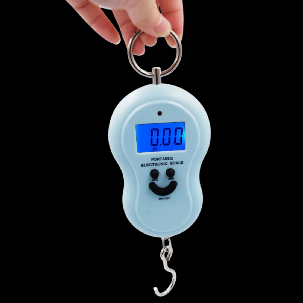 Hanging digital pocket smiley travel luggage weighing scale this ultra portable digital weighing scale, it is extremely accurate. Use for home, kitchen, wastage (newspaper) disposal, offices, warehouses, laboratories and industries. Weigh max upto 50 kg. Large blue back-lit lcd display makes for easy viewing. Handy portable and durable. Metal hook for ease in picking up and weighing. Tare function, auto zero resetting, manual switch off auto switch off without operation. Digital weight scale with accuracy, handy, and durability. kitchen weight scale digital 50KG,Equipped with a large digital LCD screen, this electronic crane scale is a family-accurate weighing tool. Its simple, reliable, user-friendly design makes it easy to weigh luggage, wallets and backpacks on the go, as well as specially designed outdoor, touring, shopping, and fishing gear with tape, tare / , Unit conversion, data locking and so on. Luggage scales are designed to save you stress and money when traveling by Uniquely designed and use conveniently for shopping, kitchen, fishing, luggage, outdoors or gifting to nearest one.