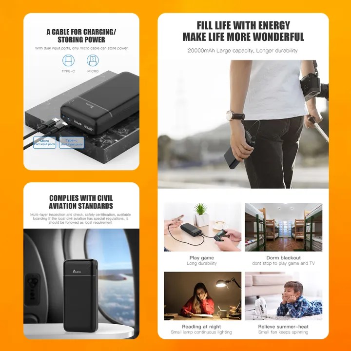 Alewa Vintage 20000 mAh Power Bank PD Fast Charging Rapid 2x Recharge