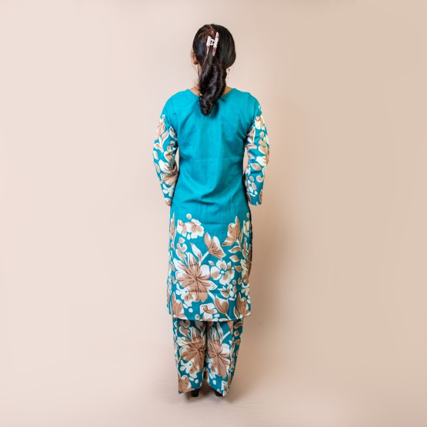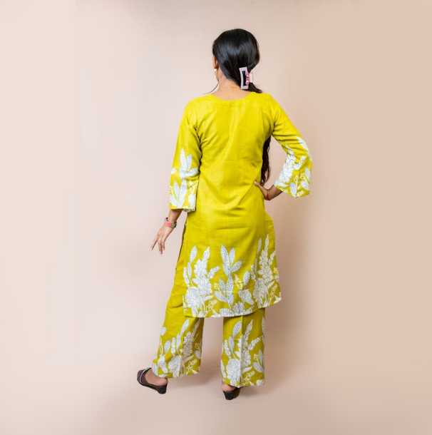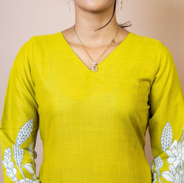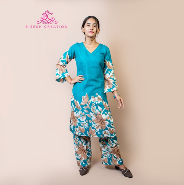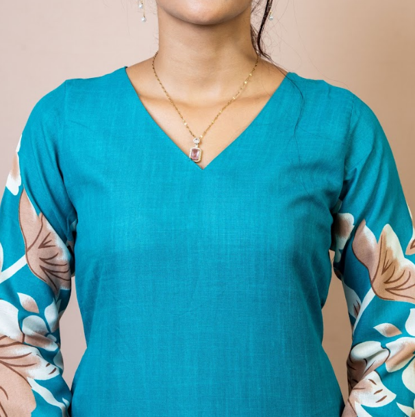 Women Mix Cotton Kurta Pant V-Neck Quarter Sleeves Set
