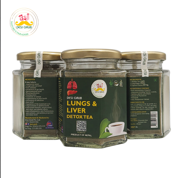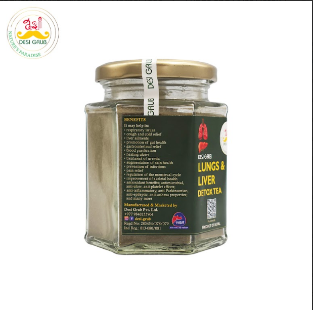 Desi Grub Lungs & Liver Detox Tea is a thoughtfully crafted herbal infusion designed to