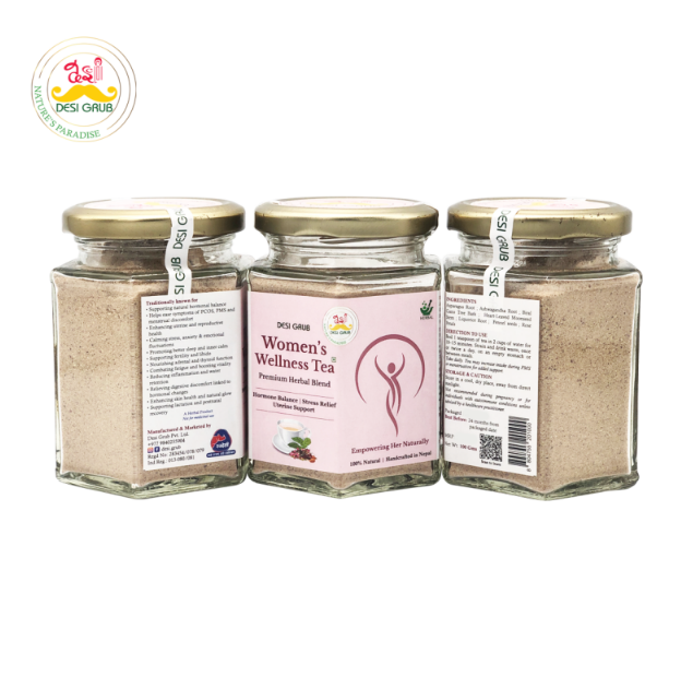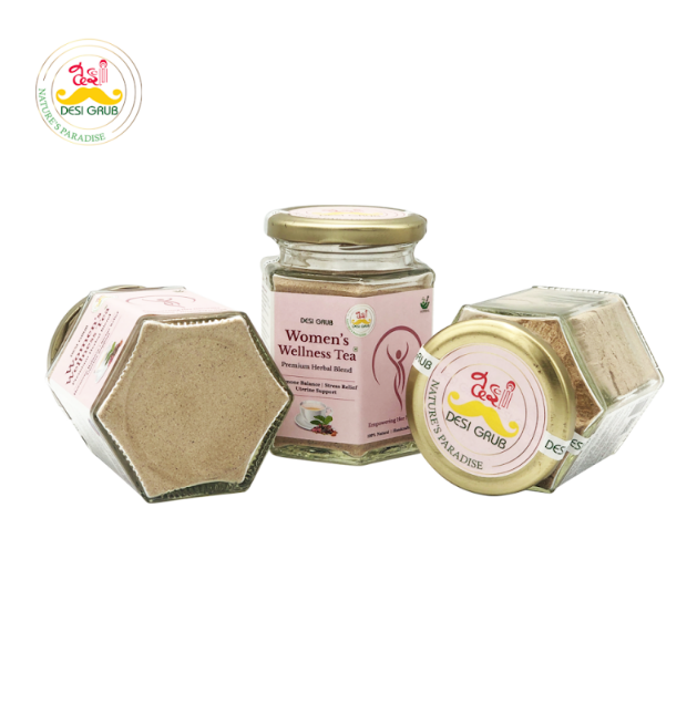 Inspired by the ancient wisdom of Ayurveda, Desi Grub’s Women’s Wellness Herbal Tea is a nurturing blend of hormone-balancing, adaptogenic, and restorative herbs—crafted to support women through every stage of their cycle.