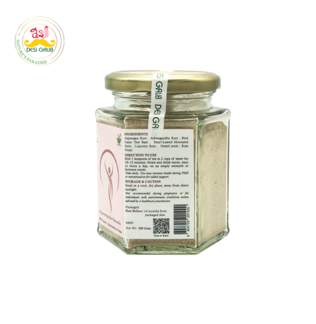With Shatavari to regulate hormones, Ashwagandha to ease stress and fatigue, Bhote Khair (Biral Gano) to tone the uterus, and Giloy to boost immunity and reduce inflammation—every cup nourishes your feminine energy from within. Complemented by the calming flavors of Liquorice, Fennel, and Rose petals, this tea is both a wellness tonic and a self-care ritual.