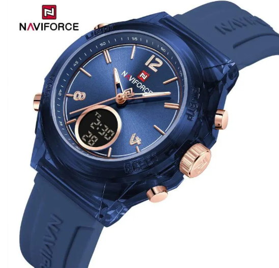 NaviForce NF7109 Simple Fashion Dual Display Silicon Strap Watch For Women - Dark Blue