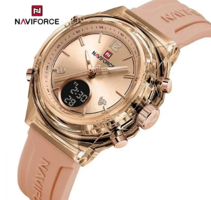 NaviForce NF7109 Simple Fashion Dual Display Silicon Strap Watch For Women - Rosegold