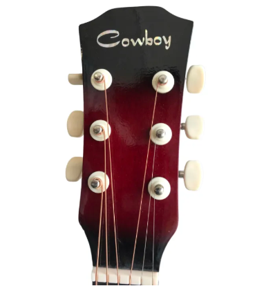 Ideal for beginners with 38-inch size. Glossy finish. Right-handed orientation for comfortable playing experience. Includes a free bag for easy transportation and storage. Light in Weight. Cheap In Price. Introducing the COWBOY 38 Inch Guitar with Free Bag, ideal for beginners and right-handed players. This glossy acoustic guitar comes with 18 frets, perfect for learning and practicing. Its 38-inch size provides a comfortable playing experience, and the included free bag ensures easy transportation, whether you're strumming at home or performing on stage. This guitar is designed to deliver quality sound and a smooth playing experience.