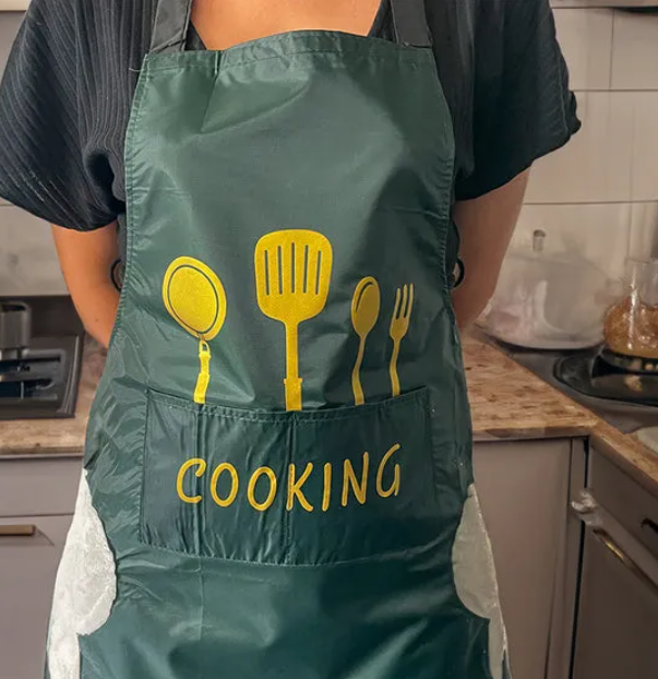 Whether you're whipping up a quick meal or hosting a grand feast, this Green Cooking Apron combines practicality with style to make your cooking experience effortless and mess-free.