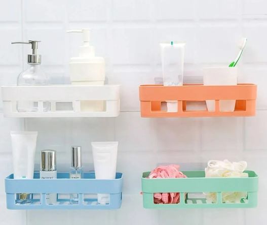 Plastic Bathroom Kitchen Storage Organize Shelf Rack Bathroom Shelves Shower Caddy Basket with Wall Mounted