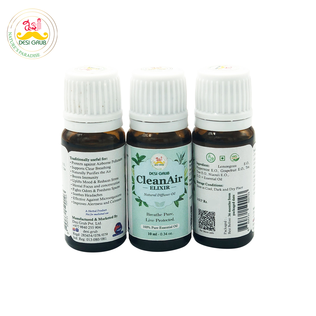 Desi Grub CleanAir Elixir 10ml – Essential Oil Blend for Air Purification, Breathing, Focus & Meditation