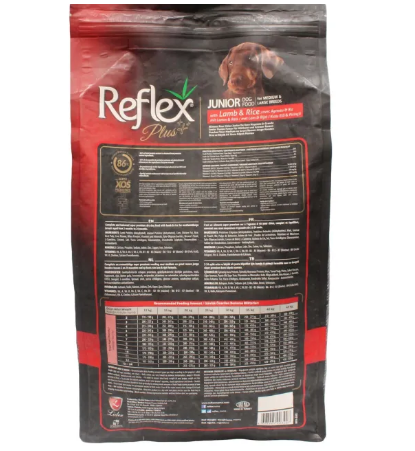 Specifications of Reflex Plus Junior Dog Food (Lamb & Rice Flavour ) 3Kg