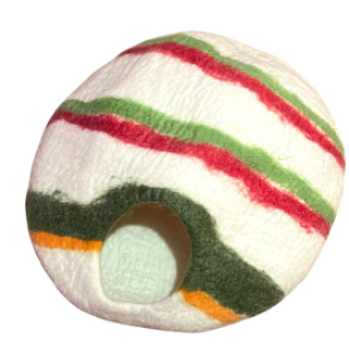 Spoil your furry friend with our Cozy Multi-Color Handmade Eco-Friendly Felt Cat House, a perfect blend of comfort and sustainability. Hand-felted in Nepal by skilled artisans, this 50cm x 50cm cat house is made from 100% New Zealand wool, providing a natural, durable retreat for cats and small pets. The soft wool regulates temperature, keeping your pet cool in summer and warm in winter, ideal for lounging or napping.