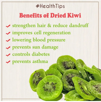 Dried Kiwi Helps in Boosts immune system. Kiwis are powerful sources of antioxidants that boost immunity and help prevent respiratory ailments like asthma. While the fiber promotes digestive health, the lutein and zeaxanthin in kiwifruits improve your vision.