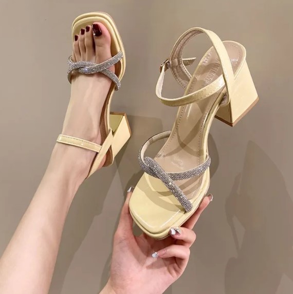 Thick Heel Rhinestone Open Sandals Shoes For Women
