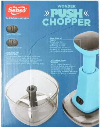 Comes with a capacity of 500ml, this chopper has a unique Pushing Stent which helps to chop vegetables and fruits with ease without putting a lot of pressure and exhausting your energy. The chopper works seamlessly without any electricity, saving your precious time and money as well. HIGH EFFICIENCY: Chopping is made easy and efficient with the Push-Down Mechanism. 3 Razor Sharp Stainless Steel blades are perfect for chopping vegetables, salad, fruits, nuts, boneless meat, and much more. The additional whisk attachment makes whipping of eggs, yoghurt, and cream easier. Save up to 60% of your time with this chopper from Home Puff and work effortlessly more efficiently. EASY TO CLEAN: Blades, bowl and storage lid are top-rack dishwasher safe. The components can be dismantled and cleaned easily.