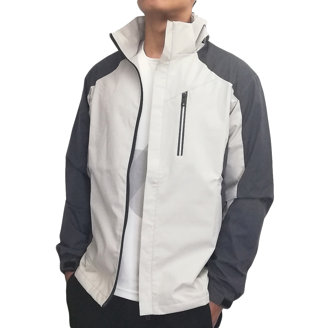 Black and Off White Multi Paneled Water Resistant Double Layered Men Windcheater with Detachable Hoodie