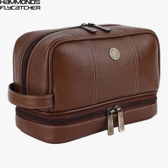 Hammonds Flycatcher Genuine Leather Shaving Bag for Men - Leather Toiletry Bag