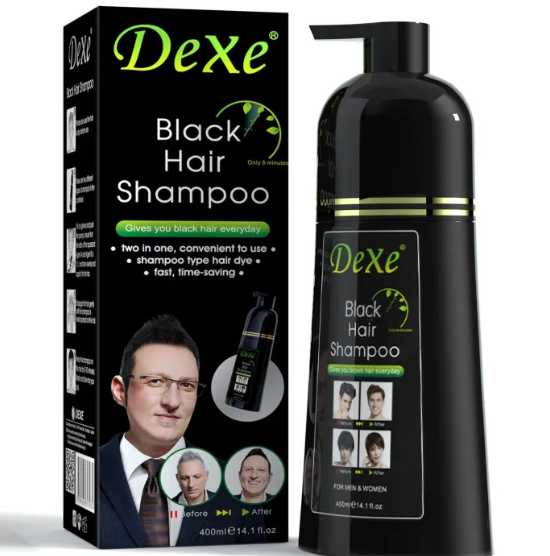 Dexe Black Hair Shampoo 400 ML - Natural Herbal Formula - Long-Lasting Fast Acting Dye - Easy & Safe to Use
