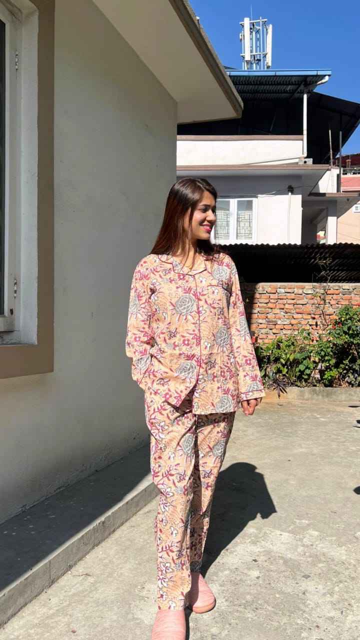 Night Suit Of Floral Design