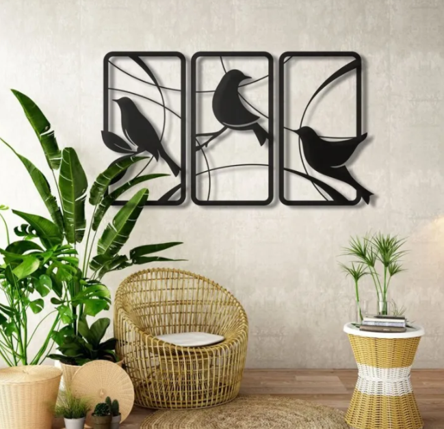 Ressence Enterprises 3pc Birds Of Paradise Wooden Canvas Modern Wall Art Decor