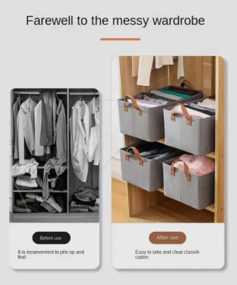 • • The 3Pcs Set Daraz Bag Wardrobe Clothes Organizer Box includes 4 pieces for versatile storage options.