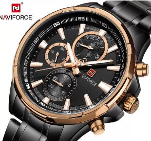 NaviForce NF9089 Chronograph Stainless Steel Watch For Men - Black/ Rose Gold