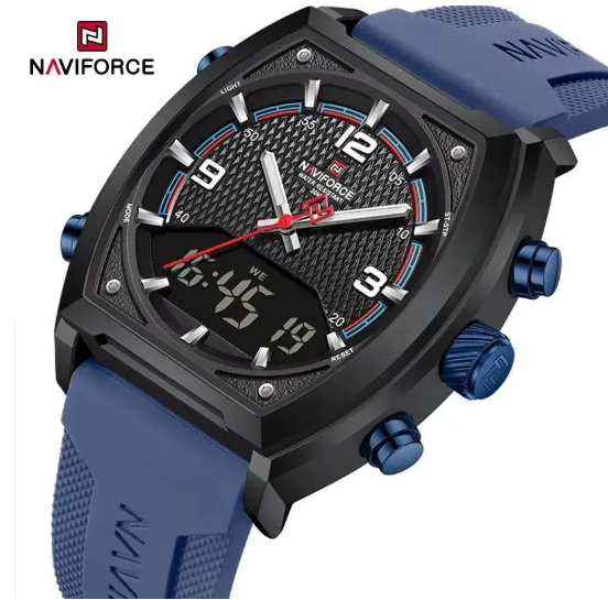 Brand : NaviForce Model Number : NF9242 Water Resistance : 3 ATM Case Material : Zinc Alloy Clasp Type : Buckle Movement : Y121F4 (Seiko Instruments Inc.) Dial Diameter : 43 mm Band Width : 20 mm Case Thickness : 15 mm Band Length : 260 mm Weight : 89 g Band Material Type : Silicon Dial Window Material Type : Hardened Mineral Glass Case Shape : Tonneau