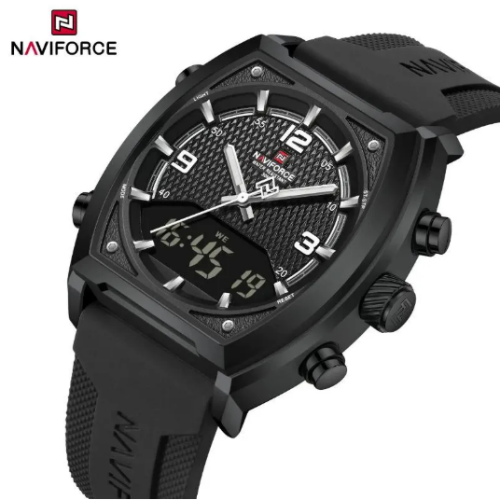 Brand : NaviForce Model Number : NF9242 Water Resistance : 3 ATM Case Material : Zinc Alloy Clasp Type : Buckle Movement : Y121F4 (Seiko Instruments Inc.) Dial Diameter : 43 mm Band Width : 20 mm Case Thickness : 15 mm Band Length : 260 mm Weight : 89 g Band Material Type : Silicon Dial Window Material Type : Hardened Mineral Glass Case Shape : Tonneau