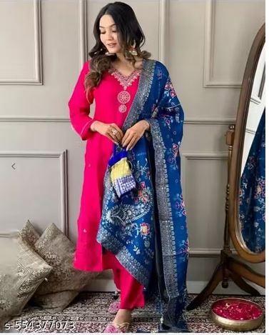 Name : Viscose Kurta With Bottom & Dupatta Set