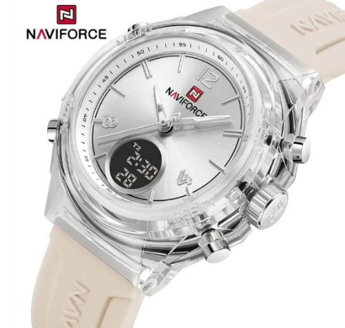 NaviForce NF7109 Simple Fashion Dual Display Silicon Strap Watch For Women - Silver/White